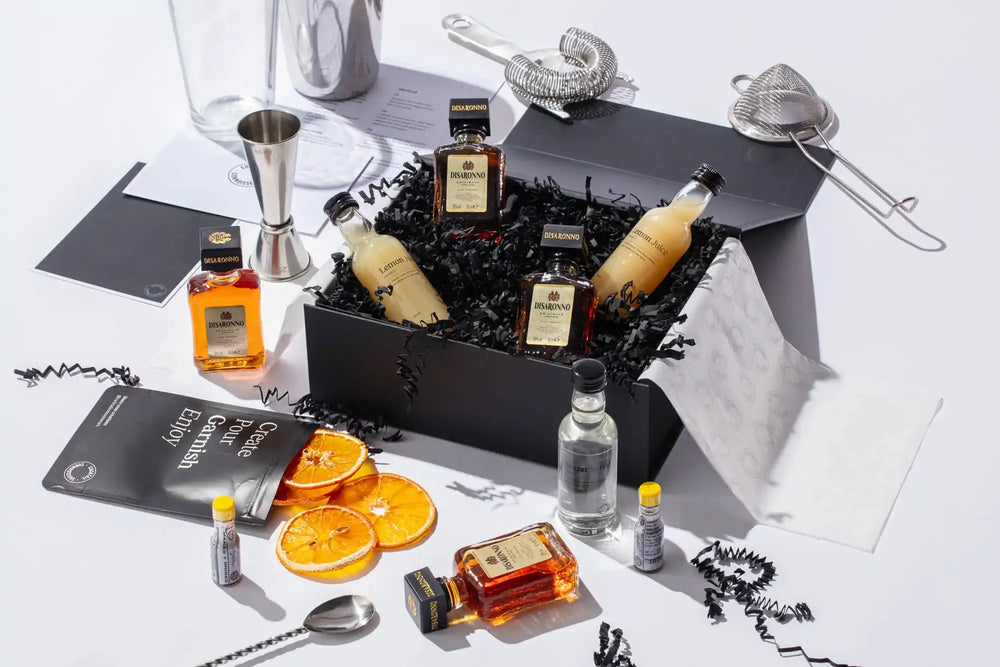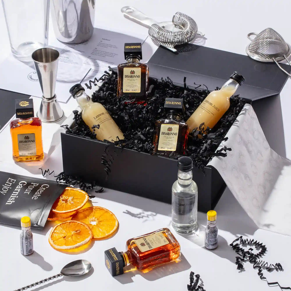 Introducing our Amaretto Sour Cocktail Gift Set—the perfect choice for cocktail lovers. Immerse yourself in the world of cocktail mixology with our comprehensive home cocktail making kit experience. The kit features all the premium ingredients and spirits you will need, accompanied by step-by-step recipe cards and tutorial videos, guaranteeing perfect cocktails every time.